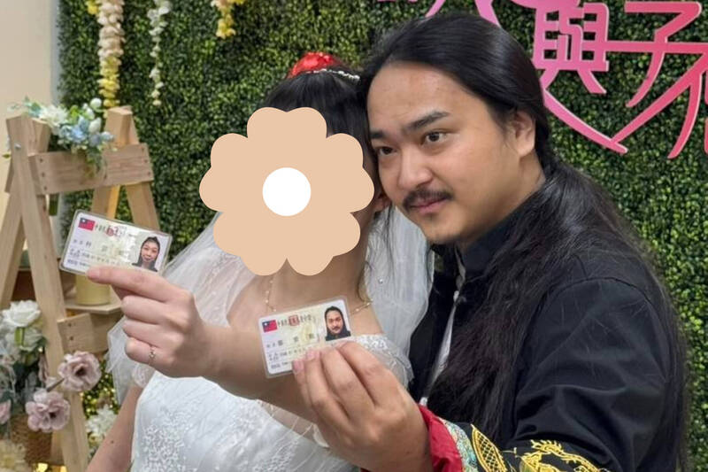「幻術大仙」鄒秉勳(右)今登記結婚娶回嬌妻。(翻攝自臉書)