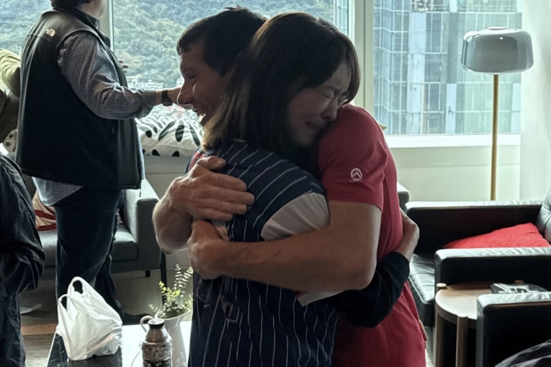 〔記者傅茗渝/台北報導〕全台灣心臟漏拍的91分鐘終於落幕,美國傳奇攀岩手艾力克斯霍諾德(Alex Honnold)今日順利徒手登頂508公尺的台北101。在成功完成這項「不可能的任務」後,台北101董事長賈永婕激動不已。