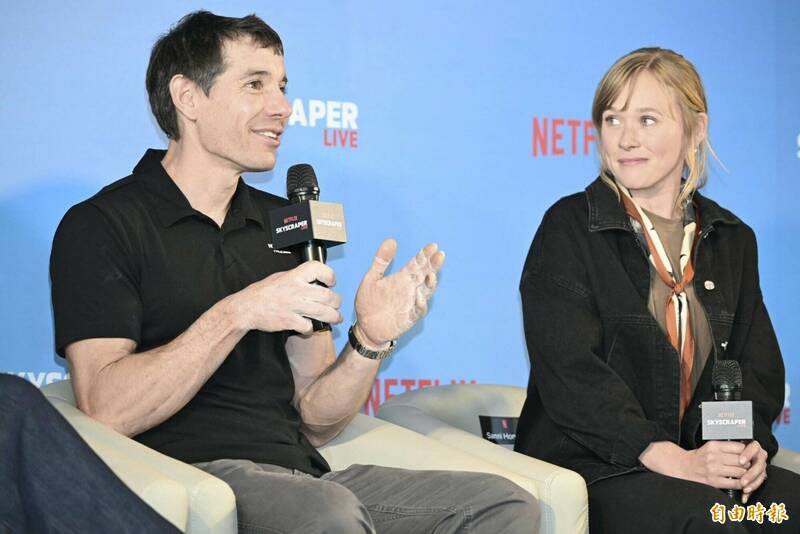 美國攀岩好手艾力克斯霍諾德(左)、太太桑妮霍諾德(右)。(記者潘少棠攝)