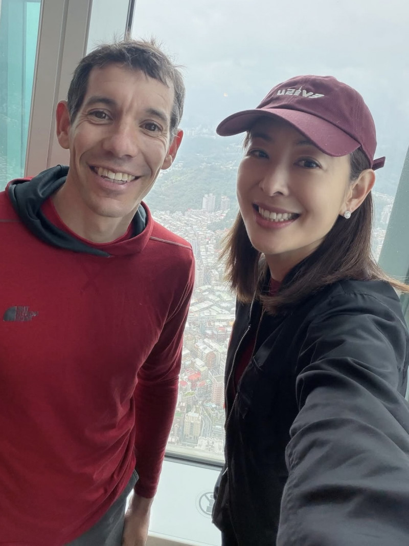 霍諾德(Alex Honnold)與台北101董事長賈永婕。(翻攝自臉書)