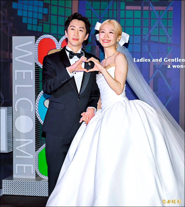 陳漢典(左)與Lulu日前舉行世紀婚禮。(記者王文麟攝)