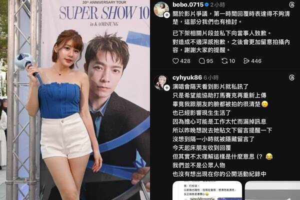 〔娛樂頻道/綜合報導〕韓流天團SUPER JUNIOR(簡稱SUJU)出道20週年高雄巨蛋演唱會圓滿落幕,許多欸噗(ELF,粉絲名)會在個人社群拍片打卡兼分享現場歡樂畫面,但這一回,中信兄弟啦啦隊女孩「BOBO」陳波波卻在拍片過程中,因不小心讓現場其他粉絲的臉孔一起入鏡,事涉「曝光他人隱私」與「隱藏反應者留言」而惹來爭議。