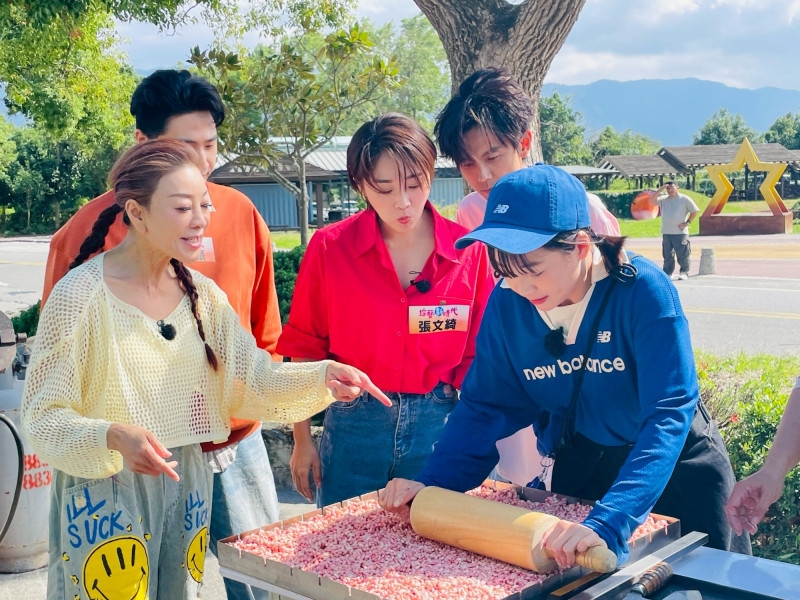 職人表示想品嘗得獎冠軍米,就要自己動手割,眾人聽完賣力的割稻米,接著前往加工廠,一台超大的爆米香機器映入眼簾,在職人帶領下,順利爆出最新鮮出爐的米香,結合在地特色作物製成洛神花口味,更是讓眾人讚不絕口。