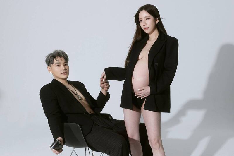 愛雅與老公拍孕婦寫真。(愛雅辣呦提供)