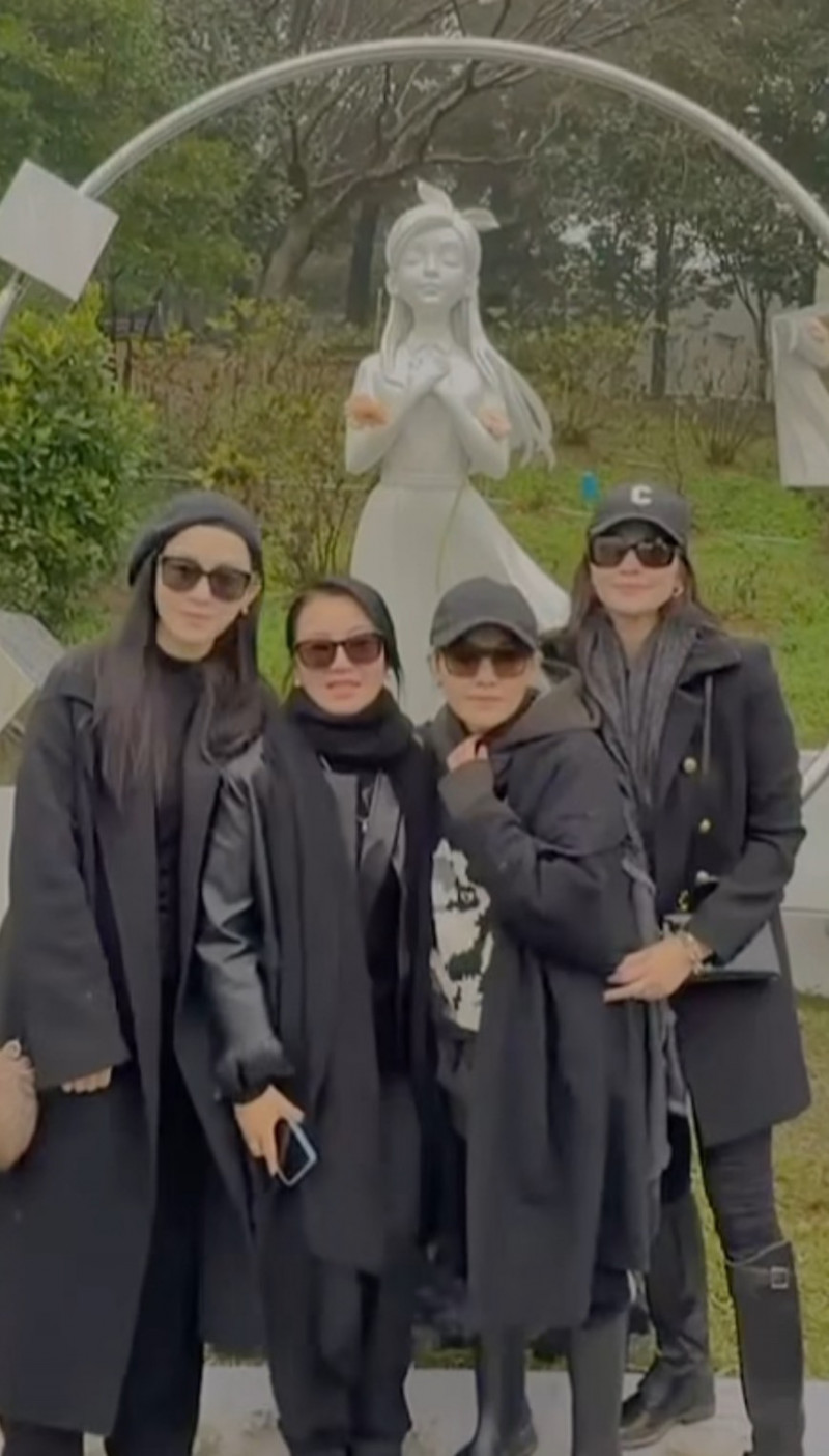 范瑋琪、阿雅、范曉萱與吳佩慈跟大S的雕像合影。(翻攝IG)