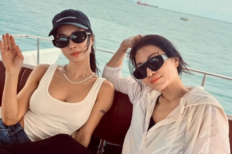 天后「Jolin」蔡依林(左)與姊姊蔡旻紋搭遊艇出遊。(翻攝自臉書)