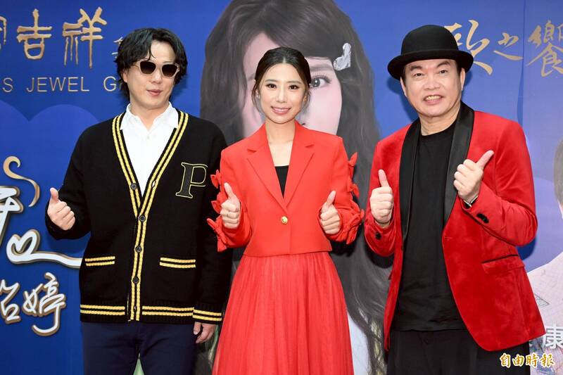 陳怡婷今天出席「歌之饗宴15」演唱會記者會,康康、蕭煌奇到場力挺。(記者胡舜翔攝)