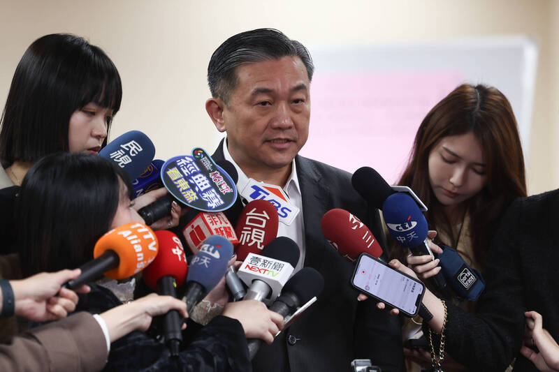 民進黨立委王定宇(中)昨遭《鏡週刊》媒體爆料捲入桃色糾紛,昨開記者會澄清,強調沒有「婚內不倫」。(中央社)