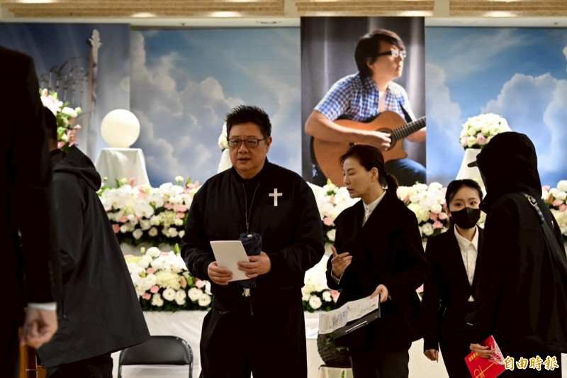 袁惟仁告別式,昔日「凡人二重唱」搭檔莫凡也前往弔唁。(記者胡舜翔攝)