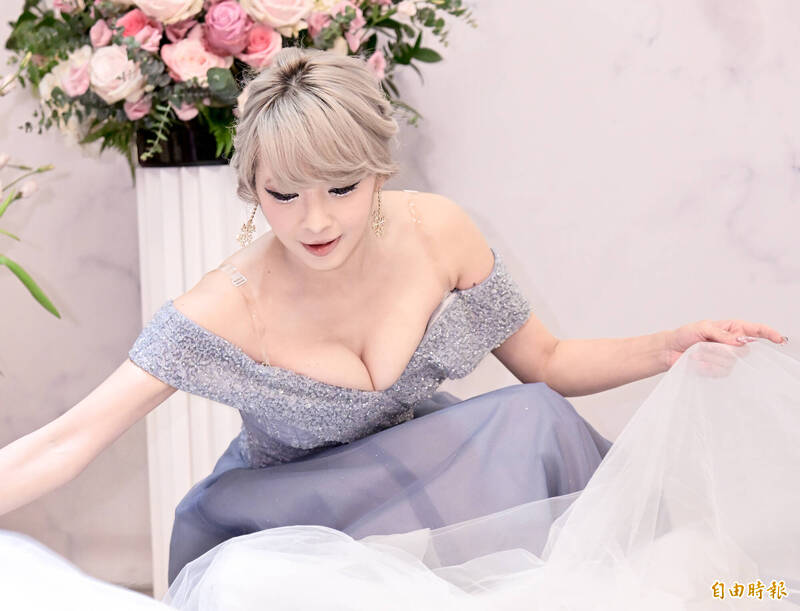 Makiyo(圖)擔任主播劉盈盈婚禮伴娘。(記者王文麟攝)