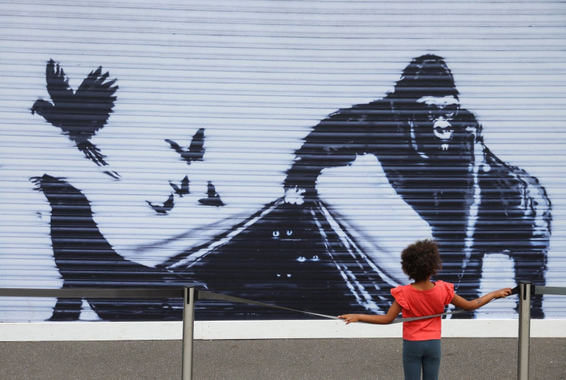 全球最神秘的匿名街頭藝術家班克西(Banksy)以深藏反戰與社會信息的作品聞名。(路透)