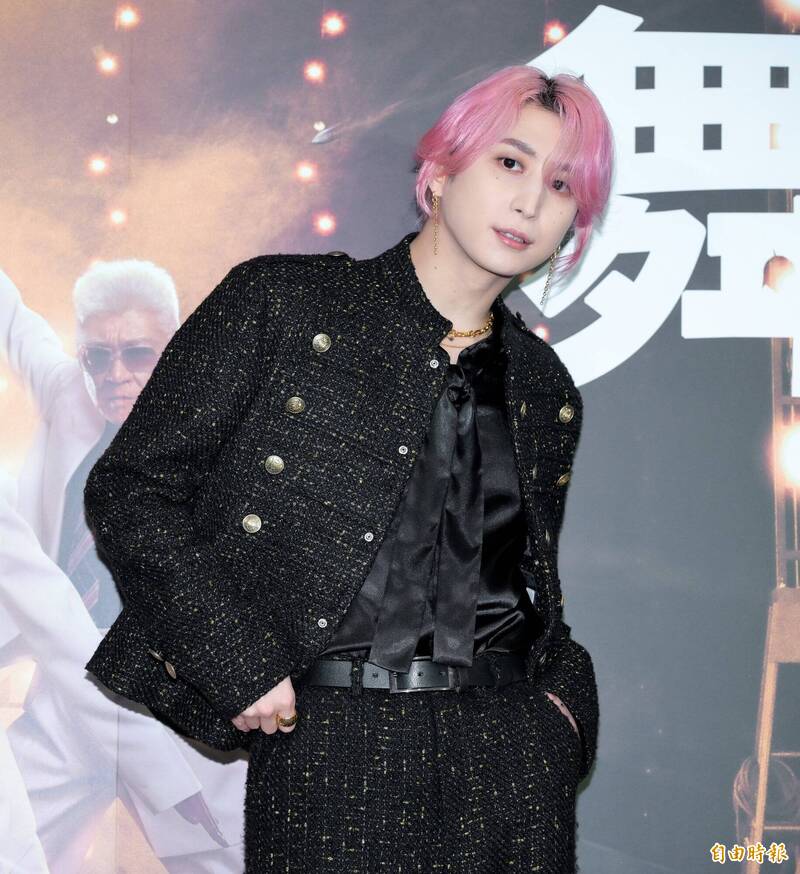 佐久間大介頂著粉色頭髮,插口袋帥氣現身。(記者王文麟攝)