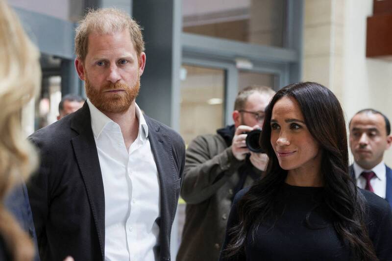 哈利王子(左)和女記者的調情簡訊很有想像空間。圖為王子夫婦今年2月在約旦安曼參觀癌症中心所攝。(路透)