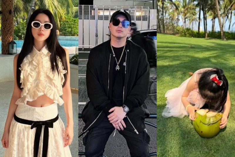 平常鮮少露面的5歲女兒也罕見出鏡,其中蹲著喝現剖椰子水的照片,模樣自然又天真,完全沒有鏡頭壓力,療癒畫面瞬間融化網友,大呼:「好甜喔~」。