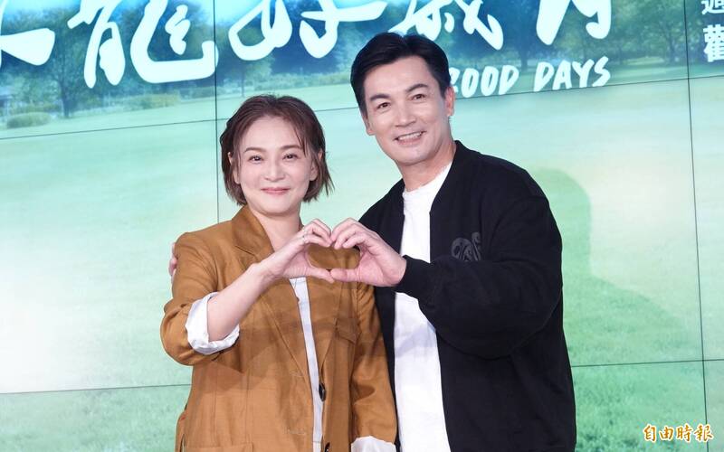 梁家榕、伊正今(20日)出席大愛劇《臥龍好歲月》首映記者會。(記者潘少棠攝)