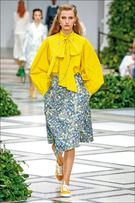 〔記者林欣若/綜合外電報導〕輕盈明亮的色彩,為換季揭開序幕,鮮豔的黃色,代表著希望、熱情、明亮,也呼應春季的陽光燦爛,為2020春夏秀場帶來愉快氣氛。Tory Burch的大秀上午10點在布魯克林博物館(Brooklyn Museum)登場,現場備有精美早餐,伴隨著輕快的音樂,邀請與會嘉賓共渡陽光輕灑的早餐時光,這樣的秀場氣氛,和這一季明亮的色彩完美呼應。Tory Burch以精緻的粉彩打造春季清新氣質,在奶油色、白色、卡其色等基本色調外,點綴亮黃色和和電光藍色,洋溢滿滿的活力。