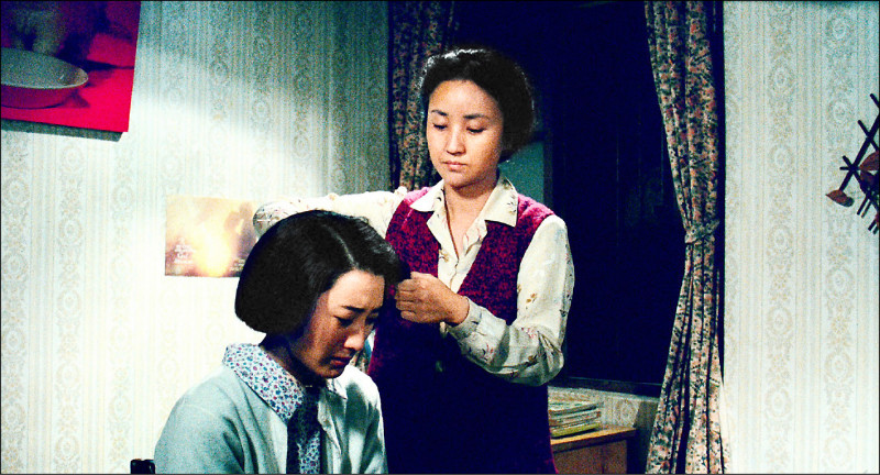 陳秋燕在片中將高中女兒蘇明明(前)的秀髮剪成狗啃。(海鵬提供)