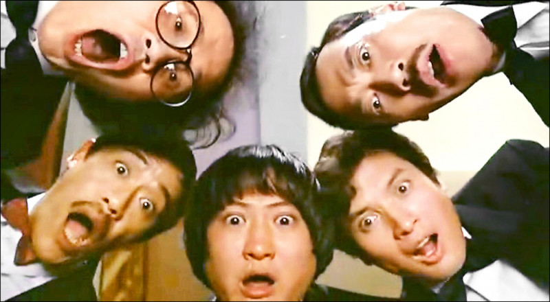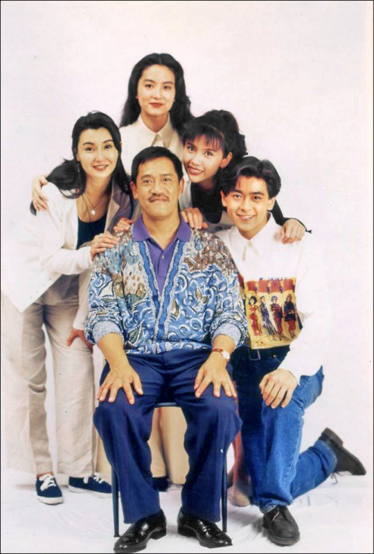 吳耀漢(前)和張曼玉(左起)、林青霞、邱淑貞和林志穎在電影《追男仔》中飆戲。(星島日報提供)
