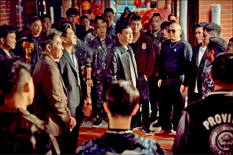 王識賢(中)參演的《角頭-鬥陣欸》集結太保、高捷等幫派教父,陣容華麗。(曼尼娛樂提供)