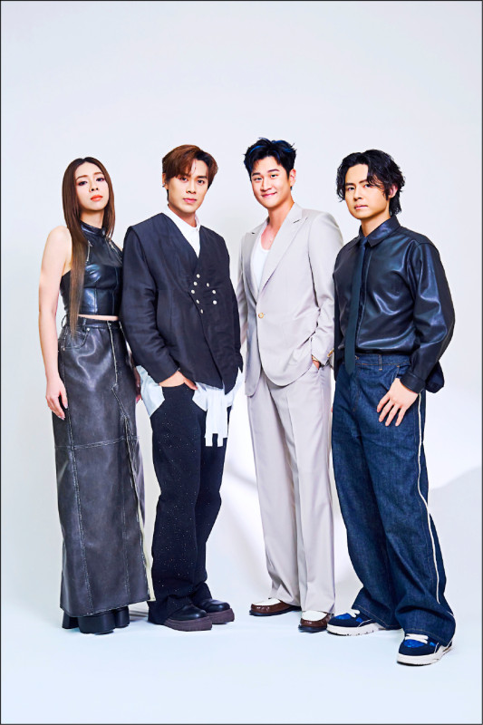 周興哲(右二)重返小巨蛋,最終場邀來告五人嗨唱《以後別做朋友》。(星空飛騰提供)