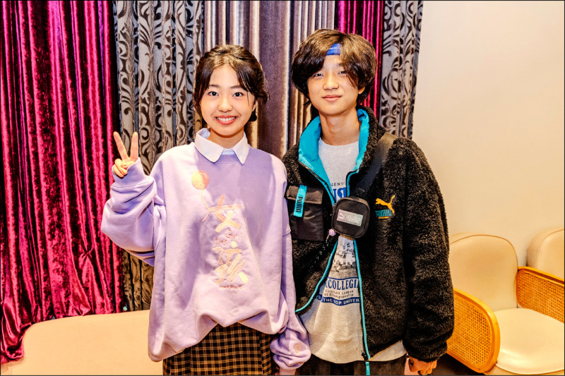 《女孩》主角白小櫻(左)獲弟弟白潤音與同學買票力挺。(甲上娛樂提供)