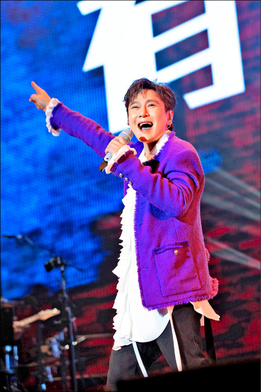 張信哲特地打造新造型,燈光一照宛如走上伸展台。