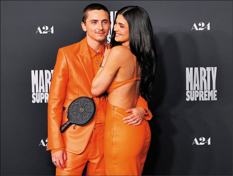 「甜茶」提摩西夏勒梅(左)奪下影帝,首度公開示愛女友凱莉珍娜。(法新社)