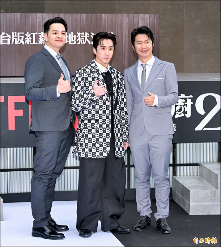 廚佛瑞德(左起)、陳漢典及阿辰師昨天一起為《黑白大廚:第2季》造勢。