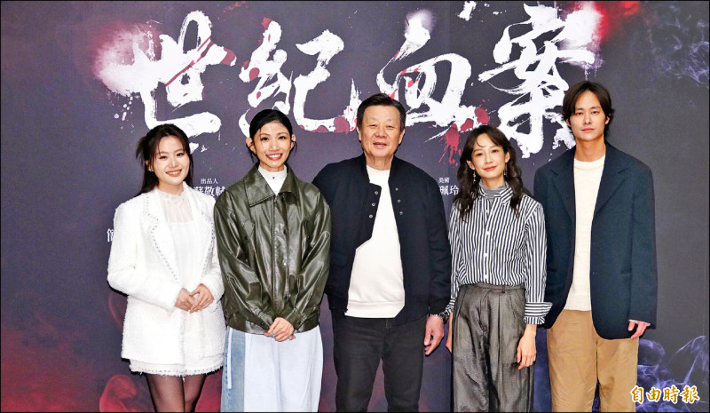 楊小黎(左起)、李千娜、寇世勳、簡嫚書、夏騰宏日前出席《世紀血案》記者會,態度以及發言引發爭議。