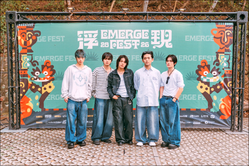 can’t be blue吉他手金采泫(左起)、鍵盤手權多泫、主唱李度勳、鼓手金大勳及貝斯手李輝元首度受邀到台中浮現祭演出。(浮現祭提供)