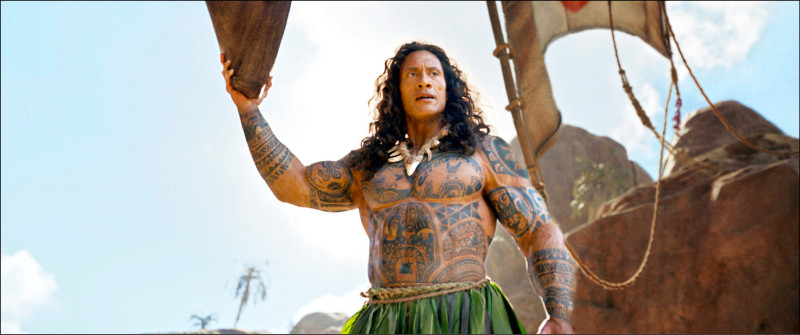 巨石強森回歸真人版《海洋奇緣》飾演他獻聲過的毛伊,真面目終於曝光。(迪士尼提供)