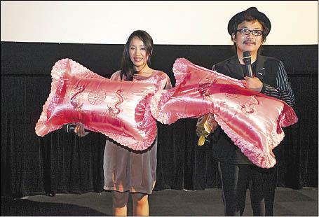 園子溫作品風格備受爭議,這次在雄影放映也不斷引起話題,神樂坂惠強調導演拍戲時很嚴格,但不忘稱讚他私底下很溫柔;高雄電影節與片商特地送上雙囍枕頭給兩人,讓喜愛台灣傳統味的園子溫眼睛一亮,表示會跟未婚妻一起抱著枕頭睡。(文/封以恩圖/高雄電影節)