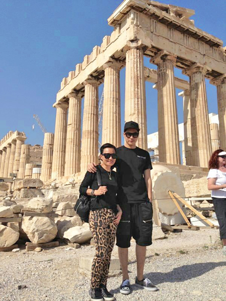比莉天性開朗,與兒子周湯豪(右)感情好。(比莉提供)記者嚴心妤/專訪