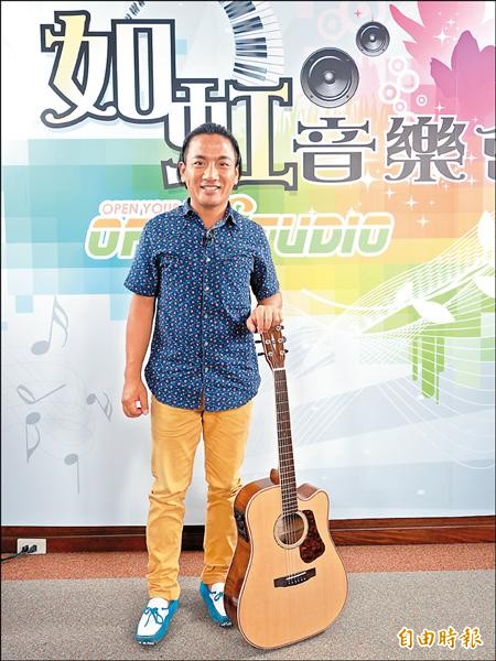 民雄只要抱起吉他,就跟點唱機一樣,可以接受隨點隨唱。(記者胡如虹攝)〔記者胡如虹/台北報導〕原住民歌手民雄光彈吉他,就擄獲了李千娜的心。